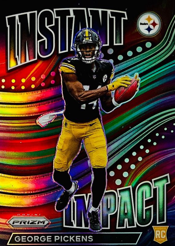 The George Pickens 2022 Prizm #II-11 Instant Impact /(SSP) Rookie card in Raw condition has not changed in price in the last 30 days and was last sold for $23.99 .