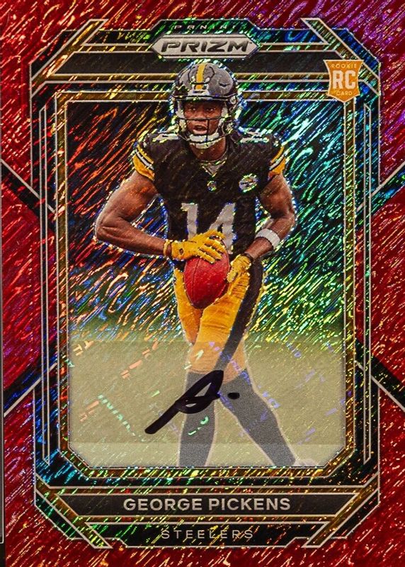 The George Pickens 2022 Prizm #329 Rookie Autographs - Red Shimmer /35 card in Raw condition has not changed in price in the last 30 days and was last sold for $86.00 .