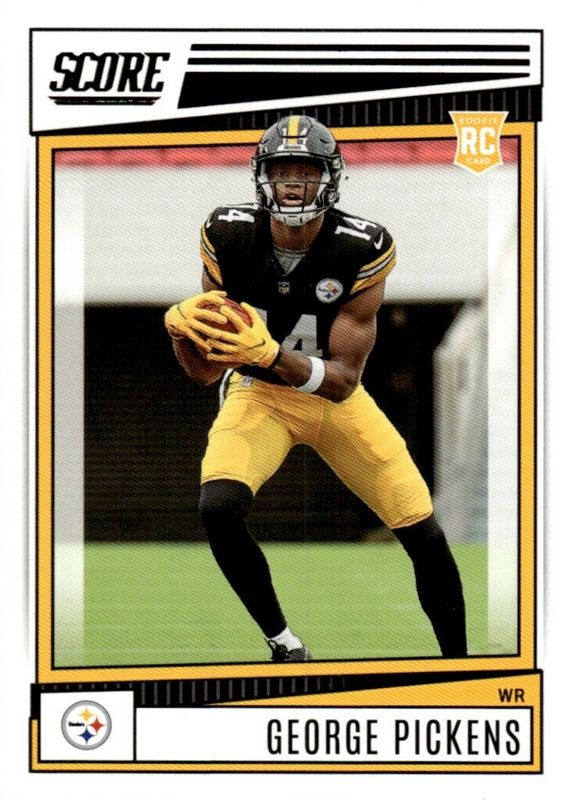 The George Pickens 2022 Score #383 Base Rookie card in Raw condition has moved up $0.09 (+10.6%) in the last 30 days and was last sold for $0.99 .
