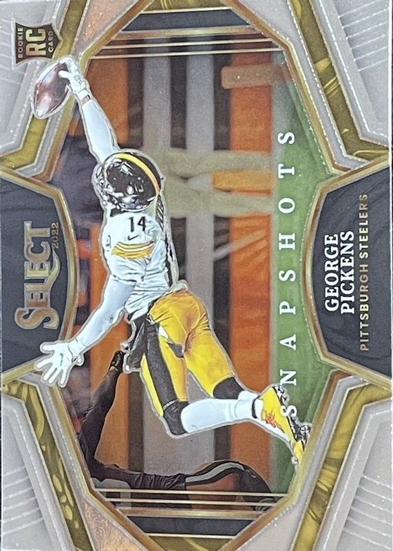 The George Pickens 2022 Select #SS-6 Snapshots Rookie card in Raw condition has moved down -$1.00 (-50.3%) in the last 30 days and was last sold for $0.99 .
