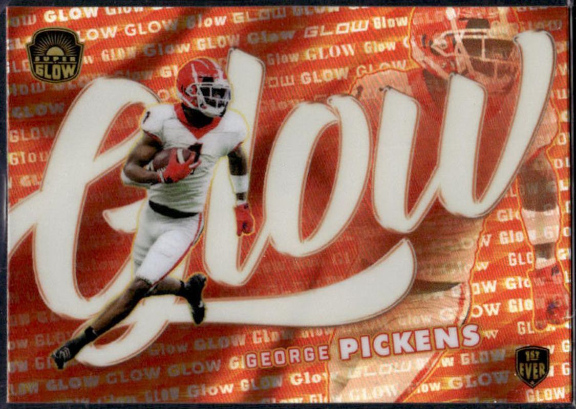 The George Pickens 2021 Super Glow #122 GLOW card is 1 of 131 George Pickens' card variations in the 2021 Super Glow set being tracked by Sports Card Investor, including Base, Blue Foil, Blue Glow, Gold Foil, and Gold Glow.