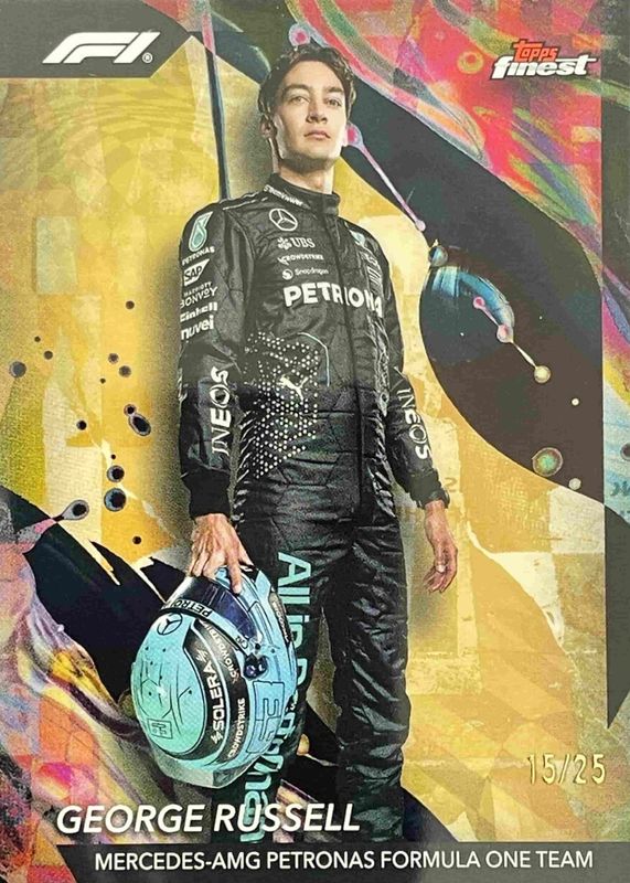 Auctions Ending Soon for George Russell 2024 Topps Finest Formula 1 #105 Uncommon - Gold Refractor /25 RAW