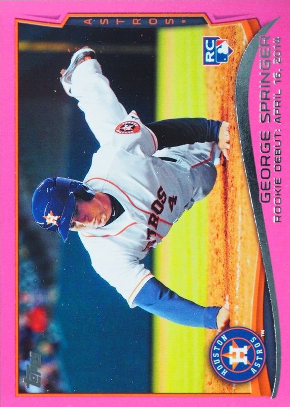 The George Springer 2014 Topps Update #US-210 Rookie Debut - Pink /50 card in Raw condition has not changed in price in the last 30 days and was last sold for $9.50 .