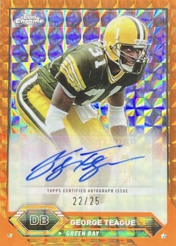 The George Teague 2023 Topps Composite #TCA-GT Chrome Autographs - Geometric Orange /25 card in Raw condition has not changed in price in the last 30 days and was last sold for $1.57 .