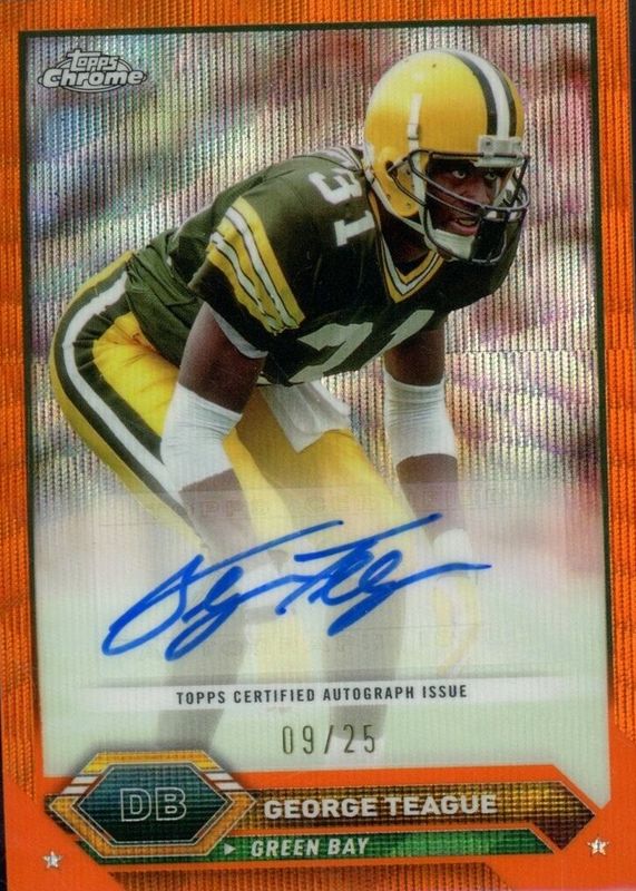 The George Teague 2023 Topps Composite #TCA-GT Chrome Autographs - Orange Wave Refractor /25 card in Raw condition has not changed in price in the last 30 days and was last sold for $12.99 .