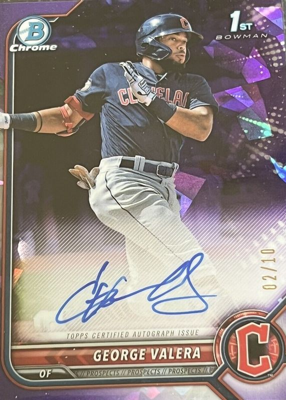 Auctions Ending Soon for George Valera 2022 Bowman Sapphire Edition #BSPA-GV Chrome Prospect Auto - Purple /10 (1st) RAW