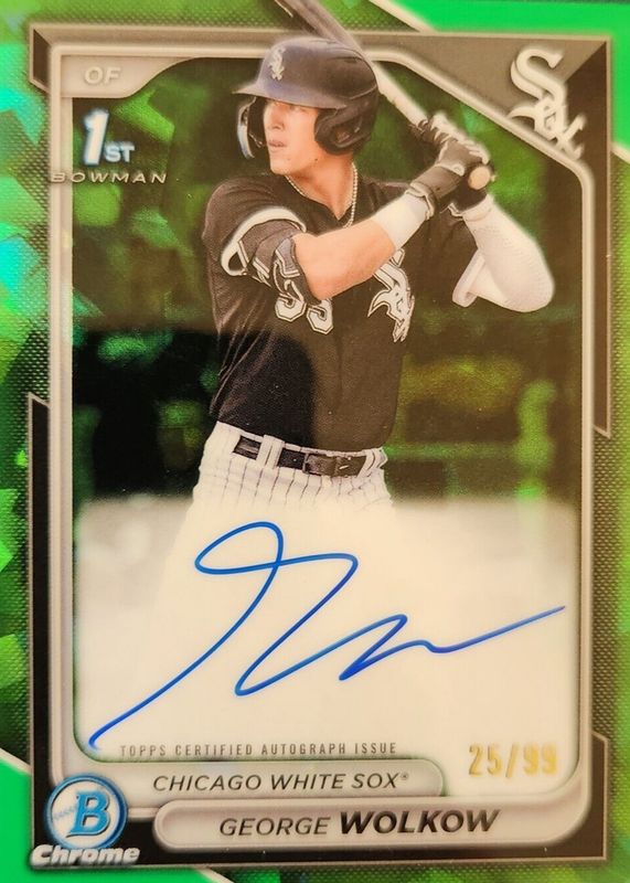 This card is 1 of 15 George Wolkow's card variations in the 2024 Bowman Sapphire Edition set being tracked by Sports Card Investor, including Base (1st), Green /99 (1st), Yellow /75 (1st), Gold /50 (1st), and Orange /25 (1st).