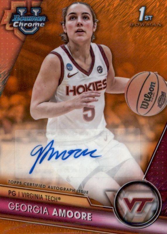 Auctions Ending Soon for Georgia Amoore 2023 Bowman Chrome University #BCPA-GA Prospect Auto - Orange Shimmer Refractor /25 (1st) RAW