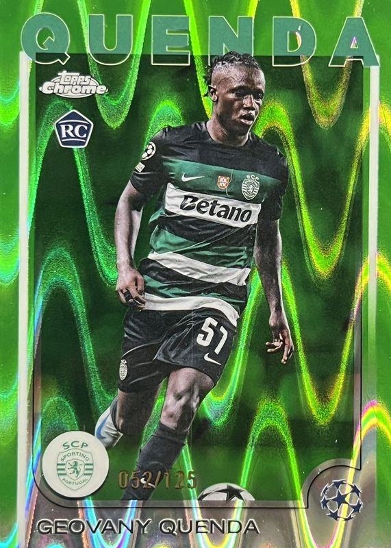 2024-25 Topps Chrome UEFA Geovany Quenda #108 Green RayWave 068/125 RC Sporting