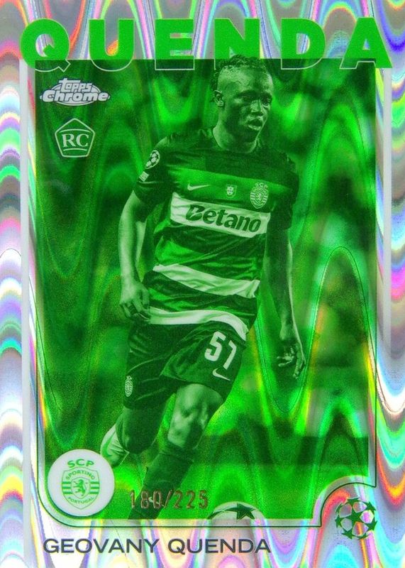 This card is 1 of 46 Geovany Quenda's card variations in the 2024 Topps Chrome UEFA Club Competitions set being tracked by Sports Card Investor, including Base, Geometric Refractor, Hongbao Red Refractor, Magenta Shimmer Refractor, and Pulsar Refractor.