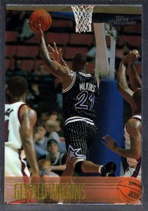 The Gerald Wilkins 1996 Topps Chrome #118 Base card is 1 of 2 Gerald Wilkins' card variations in the 1996 Topps Chrome set being tracked by Sports Card Investor, including Refractor.