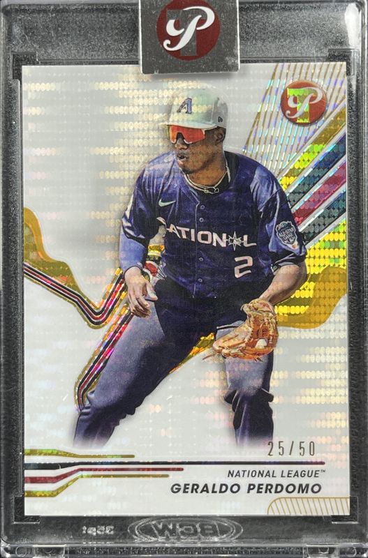 The Geraldo Perdomo 2024 Topps Pristine #263 Pristine Gold Refractor /50 card is 1 of 18 Geraldo Perdomo's card variations in the 2024 Topps Pristine set being tracked by Sports Card Investor, including Base, Pristine Refractor, Refractor, Green Refractor /150, and Pristine Purple Refractor /99.
