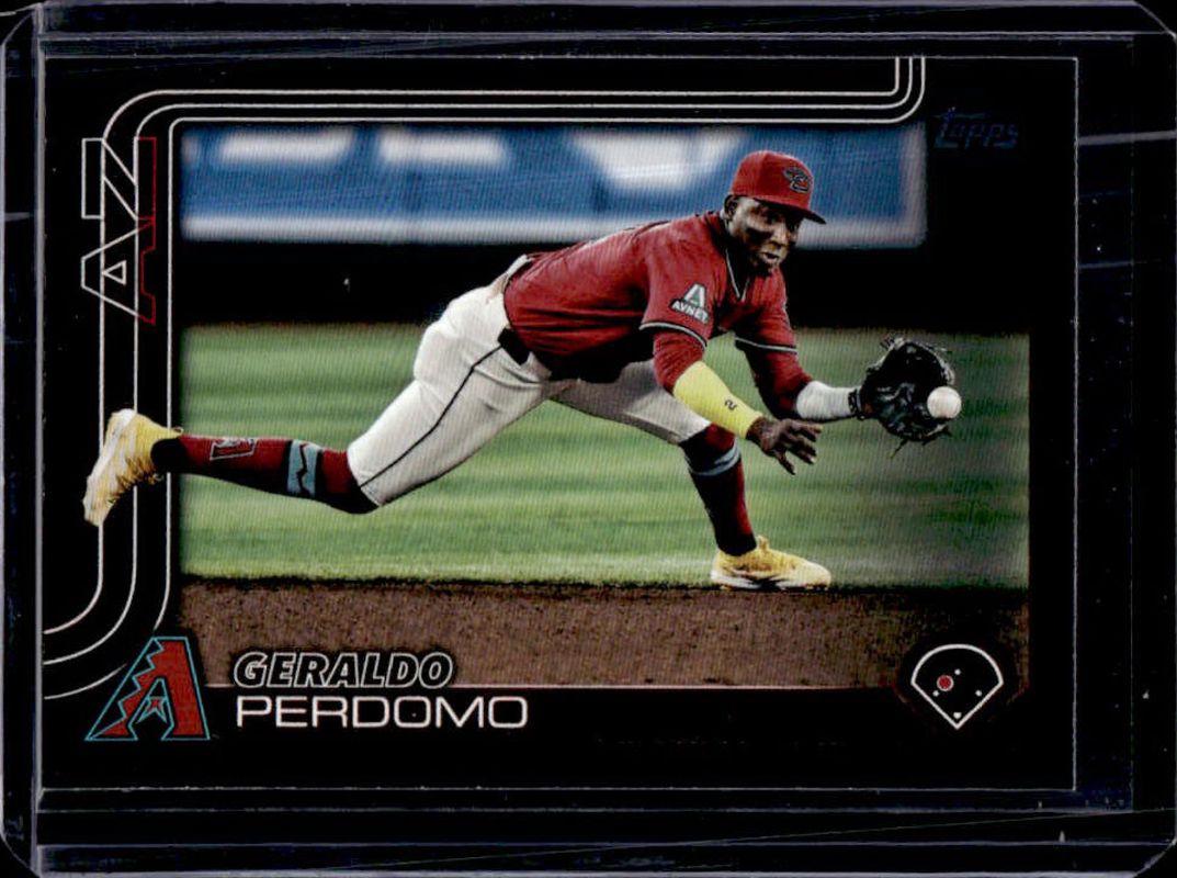 The Geraldo Perdomo 2025 Topps #228 Black /74 card is 1 of 62 Geraldo Perdomo's card variations in the 2025 Topps set being tracked by Sports Card Investor, including Base, Aqua Holo Foil, Diamante Foil, Holo Foil, and Pink Diamante Foil.