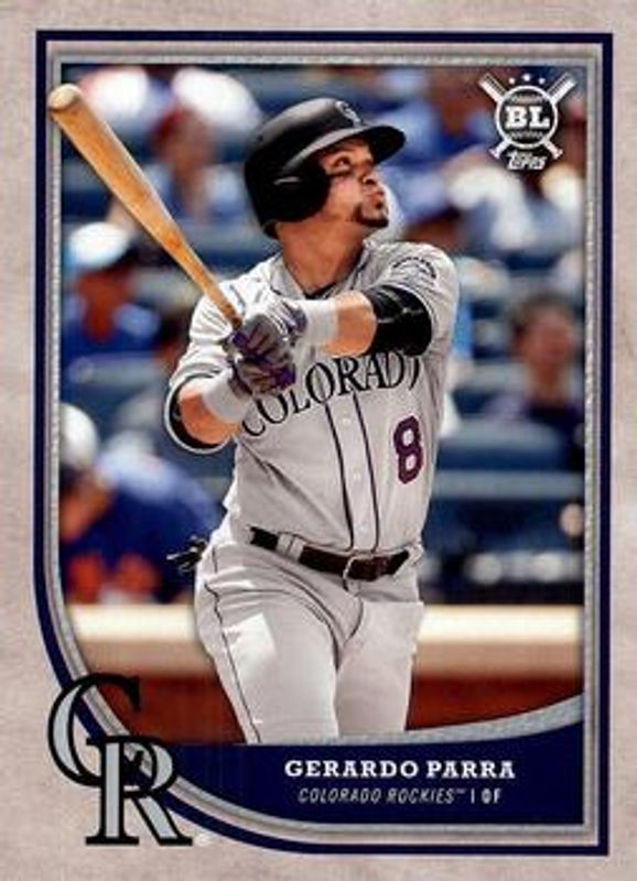 The Gerardo Parra 2018 Topps Big League #218 Base card is 1 of 6 Gerardo Parra's card variations in the 2018 Topps Big League set being tracked by Sports Card Investor, including Blue, Gold, Rainbow Foil /100, Black & White /50, and Red Foil /1.