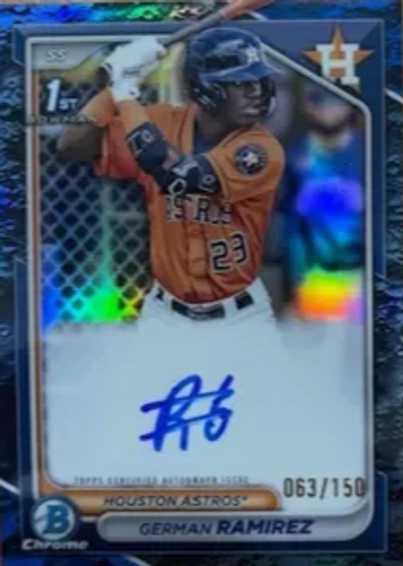 German Ramirez 2024 Bowman Chrome 1st Blue Lunar Refractor Auto /150 ASTROS