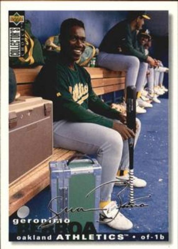 The Geronimo Berroa 1995 Upper Deck Collector's Choice #131 Silver Signatures card is 1 of 3 Geronimo Berroa's card variations in the 1995 Upper Deck Collector's Choice set being tracked by Sports Card Investor, including Base, and Gold Signatures.