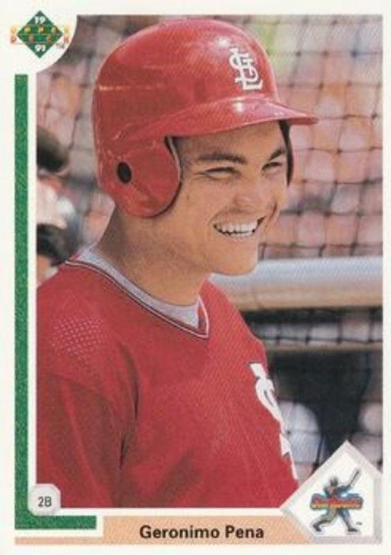 The Geronimo Pena 1991 Upper Deck #20b Base card is 1 of 2 Geronimo Pena's card variations in the 1991 Upper Deck set being tracked by Sports Card Investor, including Base.