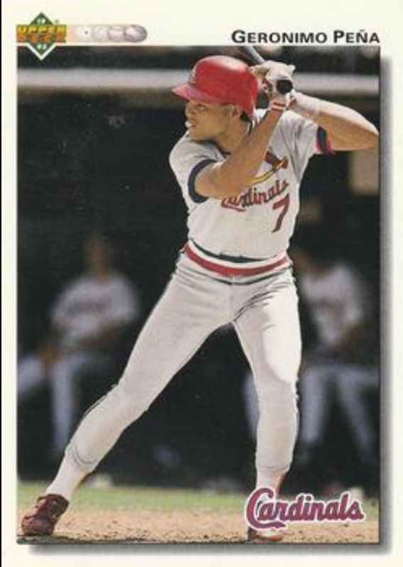 The Geronimo Pena 1992 Upper Deck #596 Base card is 1 of 2 Geronimo Pena's card variations in the 1992 Upper Deck set being tracked by Sports Card Investor, including Gold Hologram.