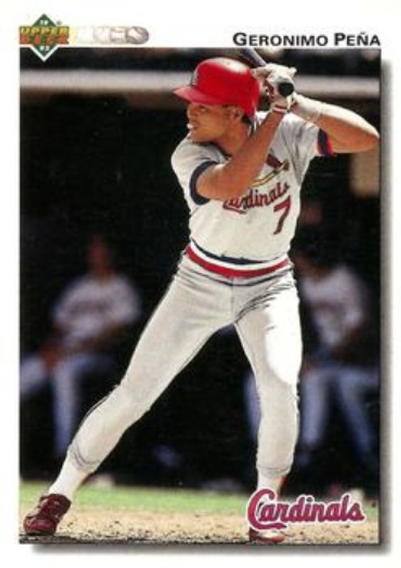 The Geronimo Pena 1992 Upper Deck #596 Gold Hologram card is 1 of 2 Geronimo Pena's card variations in the 1992 Upper Deck set being tracked by Sports Card Investor, including Base.
