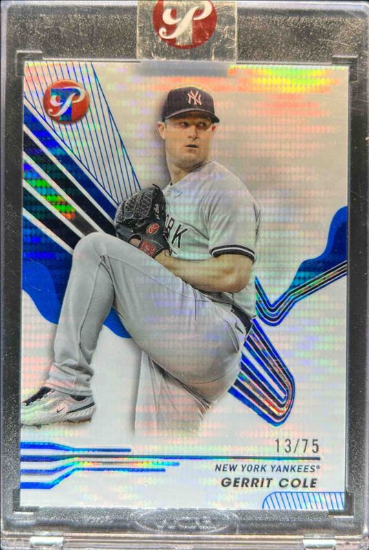 The Gerrit Cole 2024 Topps Pristine #114 Pristine Blue Refractor /75 card is 1 of 42 Gerrit Cole's card variations in the 2024 Topps Pristine set being tracked by Sports Card Investor, including #294 Base, #114 Base, #114 Pristine Refractor, #294 Pristine Refractor, and #294 Refractor.