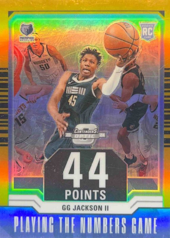 The GG Jackson II 2023 Contenders Optic #12 Playing the Numbers Game - Gold /10 Rookie card in Raw condition has not changed in price in the last 30 days and was last sold for $29.00 .