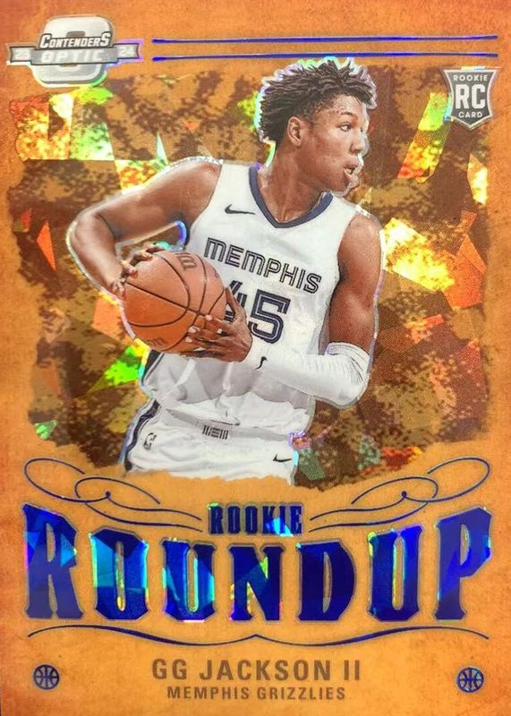 The GG Jackson II 2023 Contenders Optic #3 Rookie Roundup - Blue Cracked Ice /75 card in Raw condition has not changed in price in the last 30 days and was last sold for $5.00 .