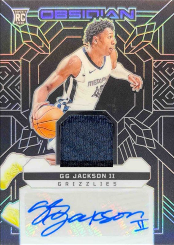 The GG Jackson II 2023 Obsidian #RJI-GGJ Rookie Jersey Ink /99 card is 1 of 63 GG Jackson II's card variations in the 2023 Obsidian set being tracked by Sports Card Investor, including #89 Base, #224 Base, #89 Electric Etch International, #89 Electric Etch Neon Flood, and #89 Electric Etch Pink Pulsar.
