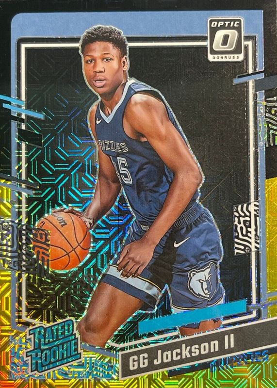 This card is 1 of 80 GG Jackson II's card variations in the 2023 Optic set being tracked by Sports Card Investor, including Base, Blue Velocity, Checkerboard, Choice Red & Green, and Fast Break.