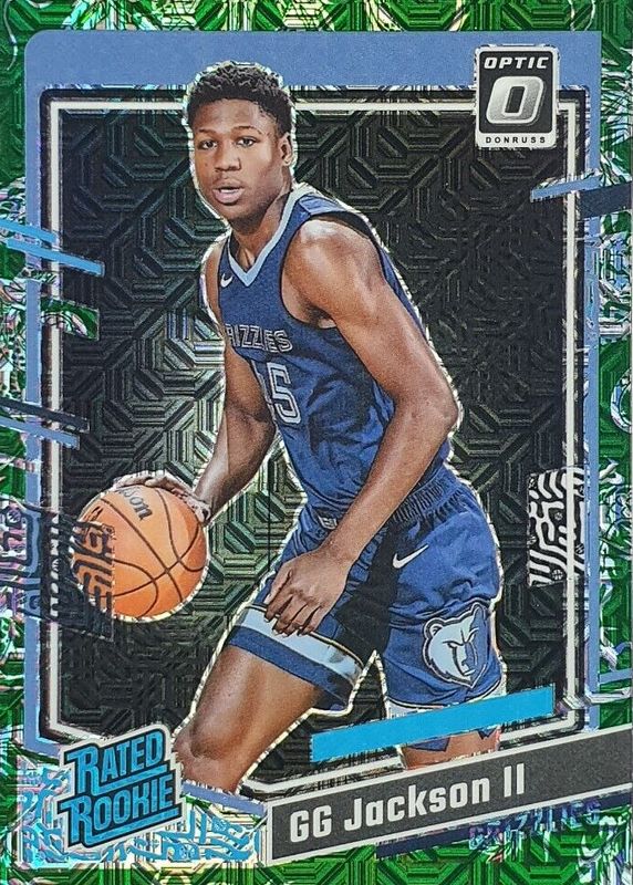 This card is 1 of 80 GG Jackson II's card variations in the 2023 Optic set being tracked by Sports Card Investor, including Base, Blue Velocity, Checkerboard, Choice Red & Green, and Fast Break.