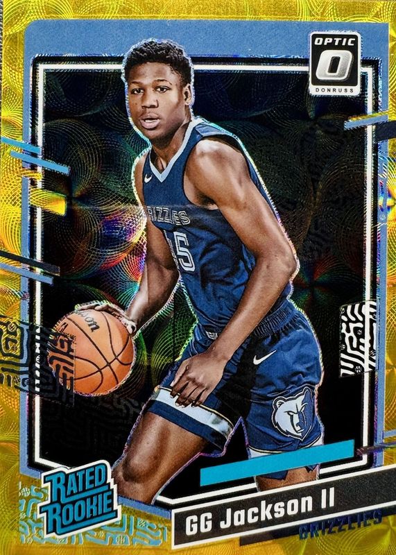This card is 1 of 80 GG Jackson II's card variations in the 2023 Optic set being tracked by Sports Card Investor, including Base, Blue Velocity, Checkerboard, Choice Red & Green, and Fast Break.