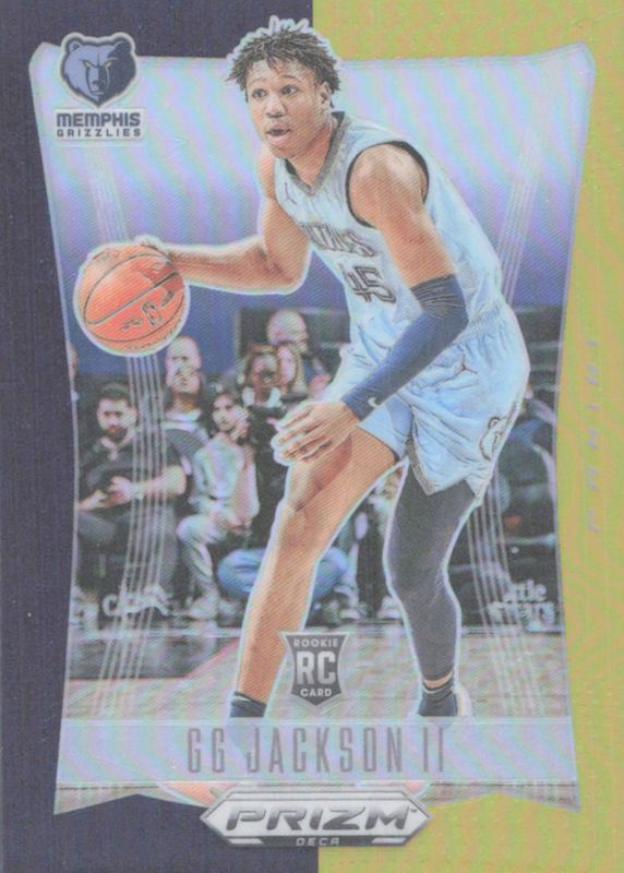 This card is 1 of 22 GG Jackson II's card variations in the 2023 Prizm Deca set being tracked by Sports Card Investor, including Base, Silver, Red /199, Blue /149, and Purple /99.