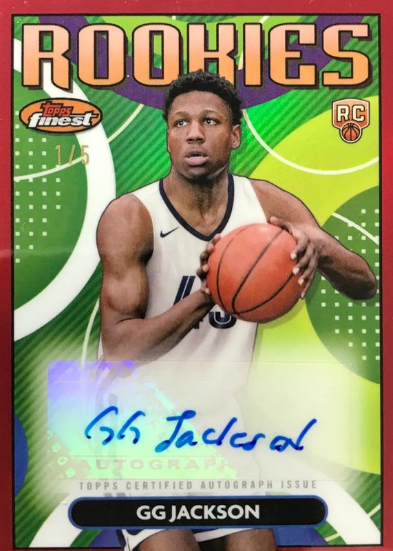 The GG Jackson II 2023 Topps Finest #RFA-GGJ Rookie Finest Autographs - Red Refractor /5 card in Raw condition has not changed in price in the last 30 days and was last sold for $56.00 .