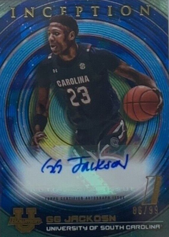 The GG Jackson II 2022 Bowman University Inception #BIA-GJ Autographs - Blue Foil /99 (1st) card in Raw condition has not changed in price in the last 30 days and was last sold for $16.53 .