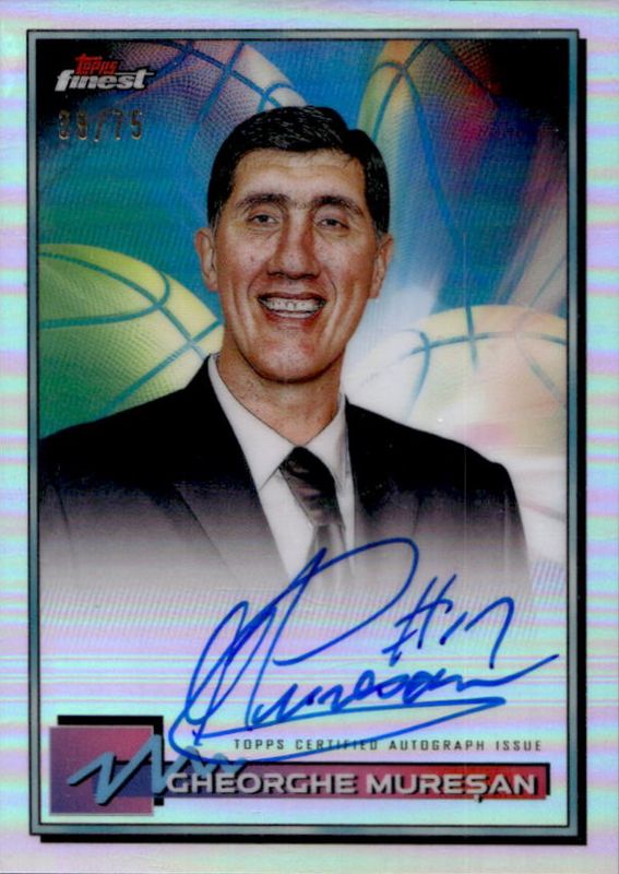 The Gheorghe Muresan 2021 Topps Finest #FA-GM Autographs - Refractor /75 card is 1 of 23 Gheorghe Muresan's card variations in the 2021 Topps Finest set being tracked by Sports Card Investor, including Base, Refractor, Atomic /299, Purple /250, and Speckle /199.