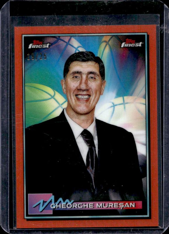 The Gheorghe Muresan 2021 Topps Finest #56 Orange /25 card is 1 of 23 Gheorghe Muresan's card variations in the 2021 Topps Finest set being tracked by Sports Card Investor, including Base, Refractor, Atomic /299, Purple /250, and Speckle /199.