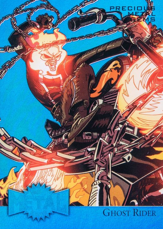The Ghost Rider 2015 Fleer Retro #19 Precious Metal Gems Blue /50 card in Raw condition has not changed in price in the last 30 days and was last sold for $599.99 .