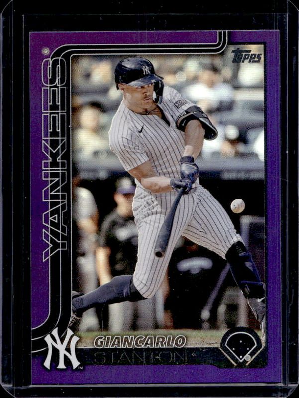 The Giancarlo Stanton 2025 Topps #262 Purple Rainbow /250 card is 1 of 75 Giancarlo Stanton's card variations in the 2025 Topps set being tracked by Sports Card Investor, including Base, Aqua Holo Foil, Diamante Foil, Holo Foil, and Pink Diamante Foil.