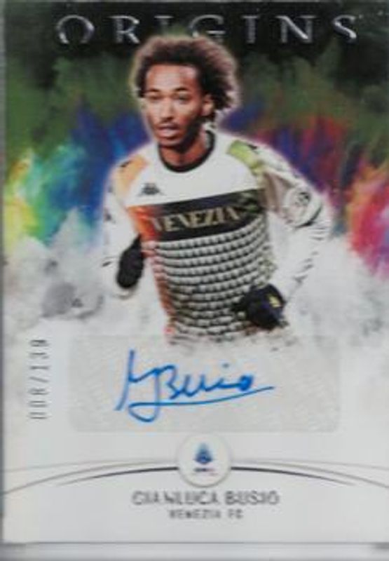 The Gianluca Busio 2021 Chronicles #O-GBU Origins Autographs Serie A /500 card is 1 of 38 Gianluca Busio's card variations in the 2021 Chronicles set being tracked by Sports Card Investor, including Certified Serie A, Certified Serie A - Gold Laser, Certified Serie A Mirror - Silver, Certified Serie A Purple - Astro, and Certified Serie A - Red Laser.