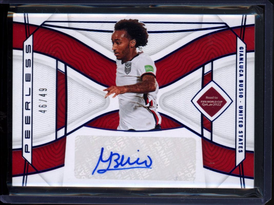 Gianluca Busio 2022 National Treasures World Cup #PS-GBU Peerless Signatures - Sapphire /49 RAW Price Guide