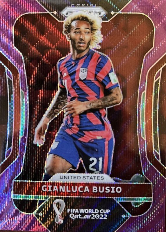 Gianluca Busio 2022 Prizm FIFA World Cup Purple Wave /99 SP #202 USA