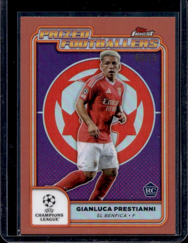 Gianluca Prestianni 2024 Topps Finest UEFA Club Competitions #PF-21 Prized Footballers - Rose Gold Refractor /75 RAW Price Guide