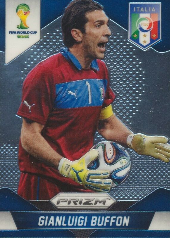 This card is 1 of 13 Gianluigi Buffon's card variations in the 2014 Prizm World Cup set being tracked by Sports Card Investor, including Blue & Red Wave, Red White Blue Power Plaid, Silver, Yellow & Red Pulsar, and Blue /199.