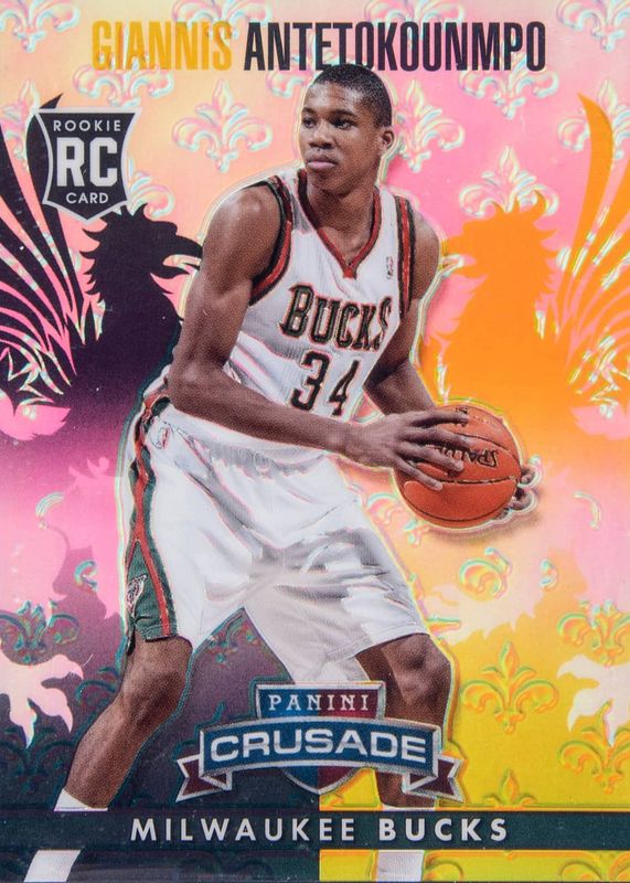 This card is 1 of 17 Giannis Antetokounmpo's card variations in the 2013 Crusade set being tracked by Sports Card Investor, including Base, Silver /25, Gold /10, 2014 National Blue /5, and Black /1.