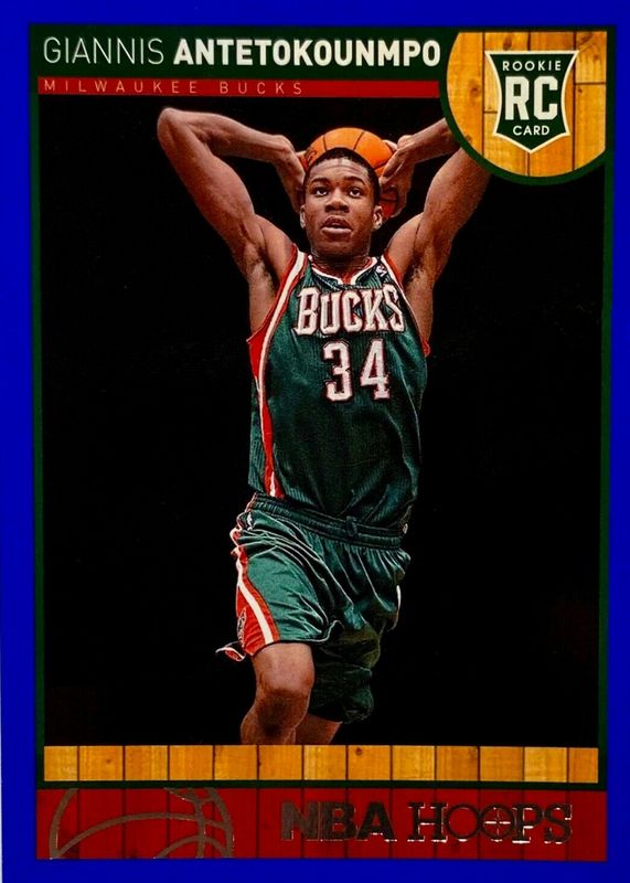 The Giannis Antetokounmpo 2013 Hoops #275 Blue Rookie card in Raw condition has moved down -$33.00 (-27.7%) in the last 30 days and was last sold for $86.00 .