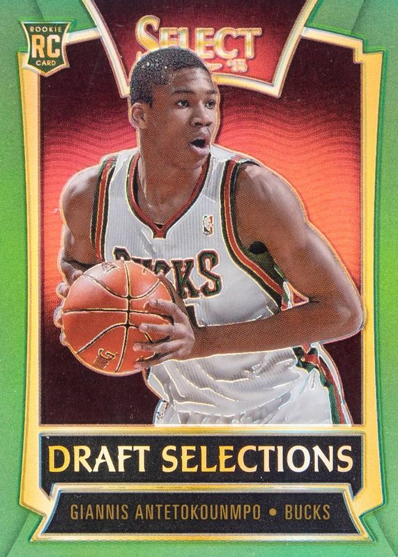 The Giannis Antetokounmpo 2013 Select #15 Draft Selections - Green /5 Rookie card in Raw condition has not changed in price in the last 30 days and was last sold for $3,700.00 .