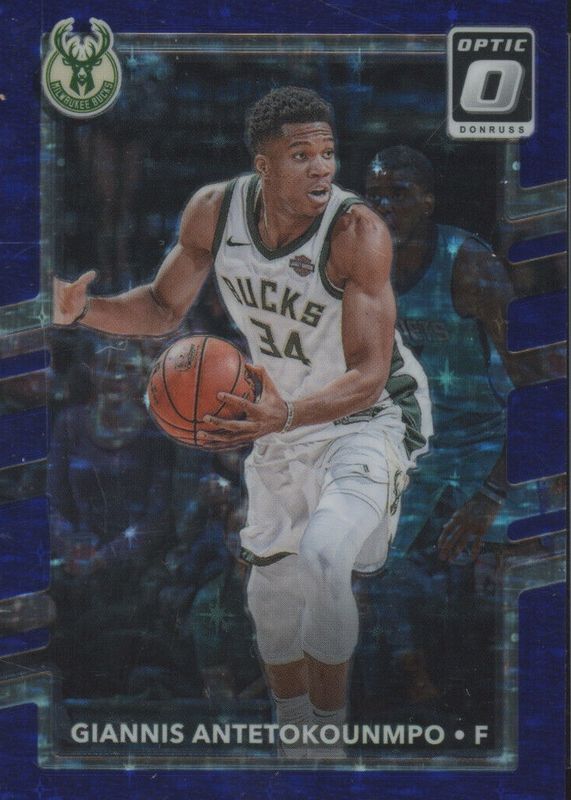 This card is 1 of 68 Giannis Antetokounmpo's card variations in the 2017 Optic set being tracked by Sports Card Investor, including Base, Blue Velocity, Checkerboard, Fast Break, and Holo.