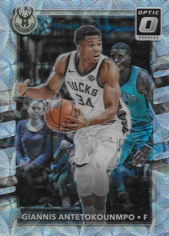 This card is 1 of 68 Giannis Antetokounmpo's card variations in the 2017 Optic set being tracked by Sports Card Investor, including Base, Blue Velocity, Checkerboard, Fast Break, and Holo.