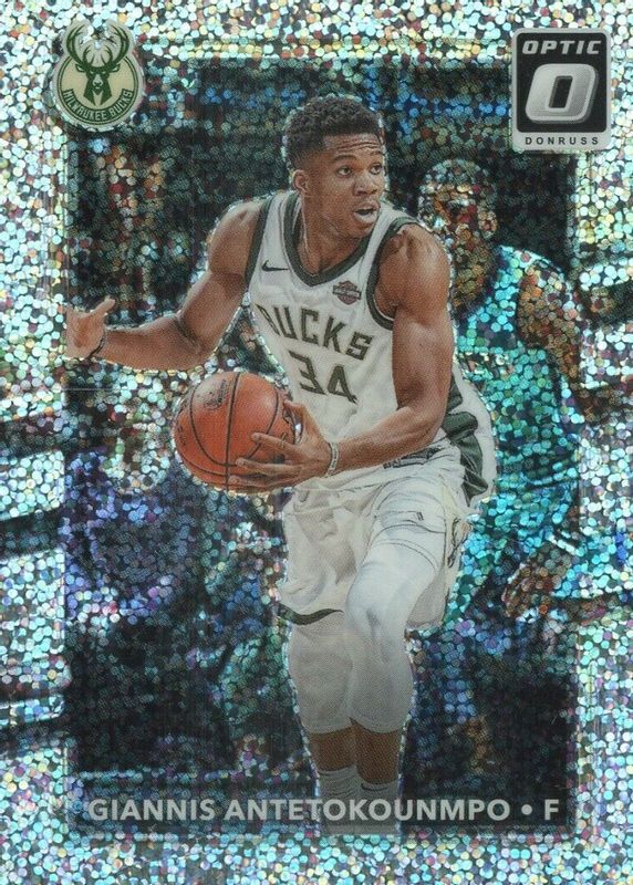 This card is 1 of 68 Giannis Antetokounmpo's card variations in the 2017 Optic set being tracked by Sports Card Investor, including Base, Blue Velocity, Checkerboard, Fast Break, and Holo.