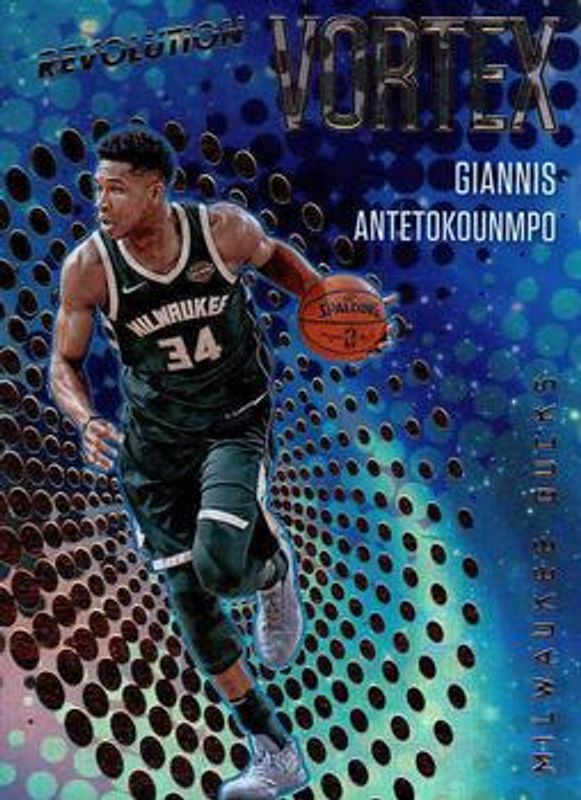 The Giannis Antetokounmpo 2017 Revolution #14 Vortex card is 1 of 24 Giannis Antetokounmpo's card variations in the 2017 Revolution set being tracked by Sports Card Investor, including Base, Astro, Fractal, Groove, and Impact.