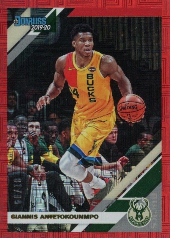 This card is 1 of 55 Giannis Antetokounmpo's card variations in the 2019 Donruss set being tracked by Sports Card Investor, including Base, Green Flood, Green & Yellow Laser, Orange Laser, and Press Proof Silver /349.